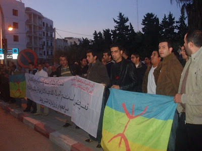 بمناسبة تخليد الذكرى 59 لصدور الإعلان العالمي لحقوق الإنسان، نظمت اللجنة المحلية بإقليم الحسيمة لدعم المعتقلين السياسيين للحركة الثقافية الأمازيغية، وقفة احتجاجية أمام المحكمة الابتدائية بالحسيمة يوم الإثنين 10 دجنبر 2007 ما بين الساعة الرابعة والنصف (16.30) والسادسة والنصف (18.30) بحضور فعاليات مدنية وطلابية وازنة من الحركة الثقافية الأمازيغية من موقع أمكناس، وعضو عن اللجنة المحلية لدعم المعتقلين السياسيين بأمكناسخلال الوقفة التي دامت زهاء ساعتين، تم رفع شعارات تنديدية واحتجاجية على الوضع الغير الطبيعي والشاذ الذي يعيشه المعتقلون السياسيون للحركة الأمازيغية وتعيشه معهم الحركة نفسها بل والقضية الأمازيغية برمتها، حيث اعتبرت كلمة اللجنة المحلية بالحسيمة سنة 2007 بمثابة سنة سوداء في تعامل الدولة المخزنية مع القضية والحركة الأمازيغية من خلال الاعتقالات والاستفزازات والمنع الذي العديد من مكونات الحركة الأمازيغية ومناضليها... كما نددت الشعارات بالأحكام الجائرة الصادرة في حق المعتقلين السياسيين للحركة الأمازيغية، وبالقمع المخزني للنضالات الأمازيغية والاعتقالات التي تطال المناضلين الأمازيغيين، مثلما تم التضامن مع هؤلاء المعتقلين في السجون المخزنية، واعتبرت محاكماتهم محاكمات سياسية عنصرية